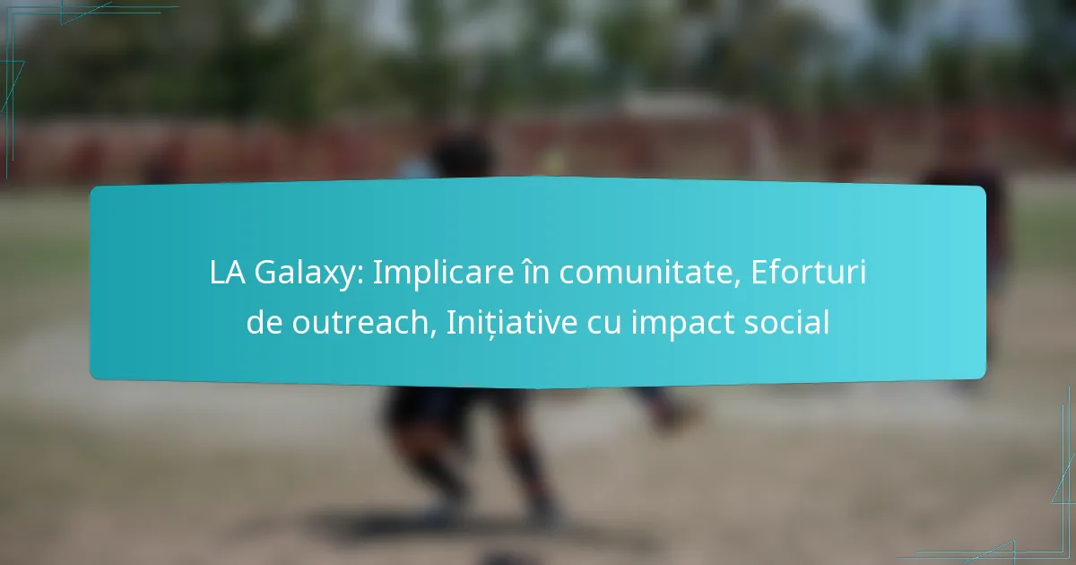 LA Galaxy se angajează în diverse eforturi de outreach menite să îmbunătățească implicarea comunității și să promoveze impactul social. Aceste inițiative se concentrează pe populațiile defavorizate, parteneriatele cu organizații locale și accesibilitatea pentru a asigura că fotbalul este inclusiv și benefic pentru toți membrii comunității.