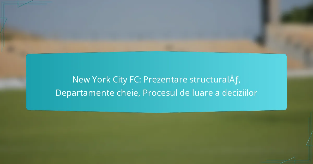 New York City FC (NYCFC) funcționează într-un cadru structural distinctiv care combină proprietatea, managementul și strategiile operaționale pentru a prospera în Major League Soccer (MLS). Organizația clubului pune accent pe colaborarea între departamentele cheie, cum ar fi marketingul, dezvoltarea jucătorilor și antrenamentul, toate contribuind la succesul său și la implicarea în comunitate. Procesul decizional la NYCFC urmează o ierarhie structurată, promovând alinierea cu obiectivele strategice prin contribuții colaborative din partea diferitelor părți interesate.