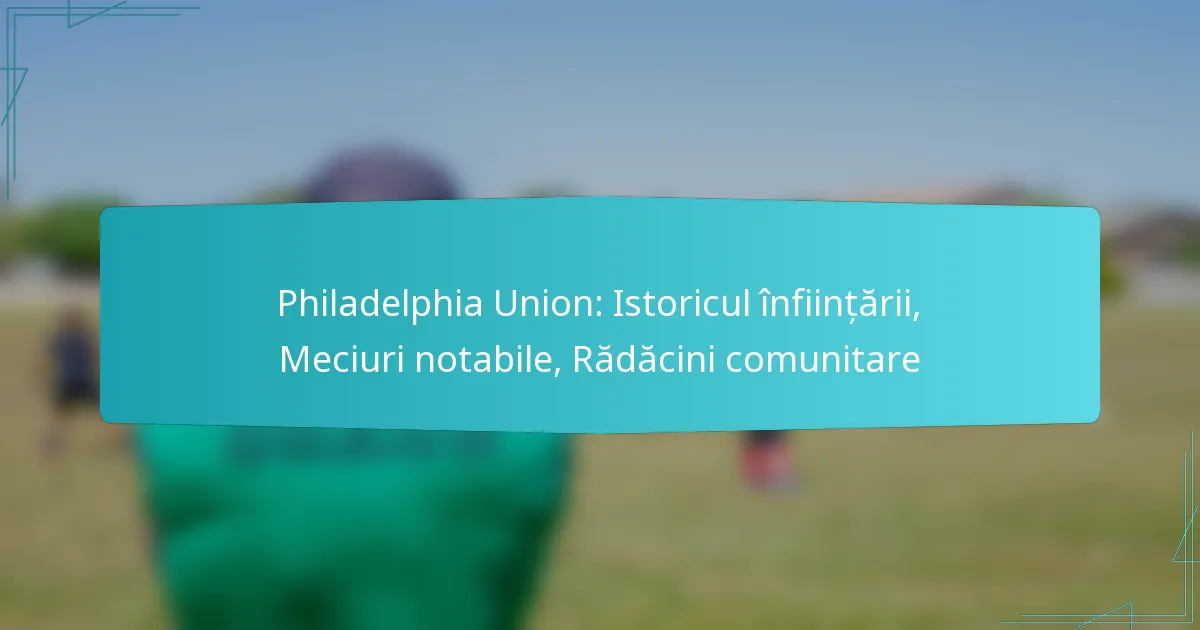Philadelphia Union a fost înființată în 2008 ca o echipă profesionistă de fotbal în Major League Soccer (MLS), având ca scop aducerea fotbalului de top în regiune și consolidarea legăturilor comunității. Clubul a avut mai multe meciuri definitorii care i-au conturat identitatea, creând momente memorabile pentru fani și comunitate. Prin programe de implicare și parteneriate, Union se angajează activ cu comunitatea locală, promovând fotbalul la nivel de bază și întărind legăturile comunității.